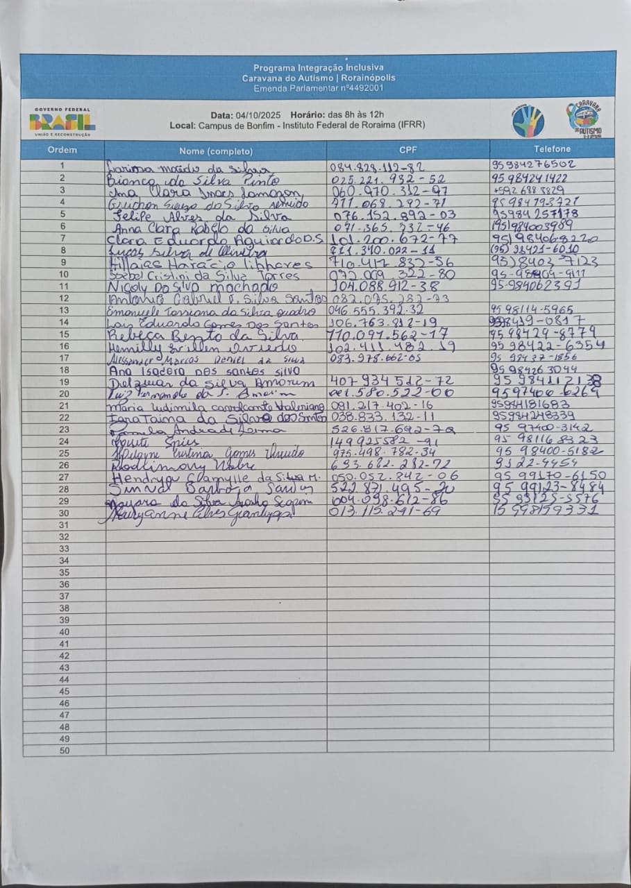 Caravana realizada no município Bonfim, no Campus do IFRR, no dia 4 de outubro de 2025, das 8h às 12h.